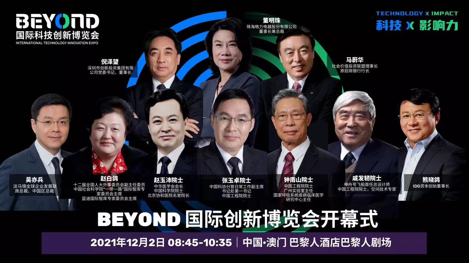 BEYOND世界科技立异博览会开幕式将于12月2日在澳门巴黎人酒店巴黎人剧场重磅举行!到时将有世界级的科学家、各职业尖端嘉宾和领导到会开幕式,我国科协分担日常作业副主席、书记处第一书记,我国工程院张玉卓院士;中华医学会会长,我国科学院院士,北京协和医院声誉院长赵玉沛院士将宣布开幕致辞。